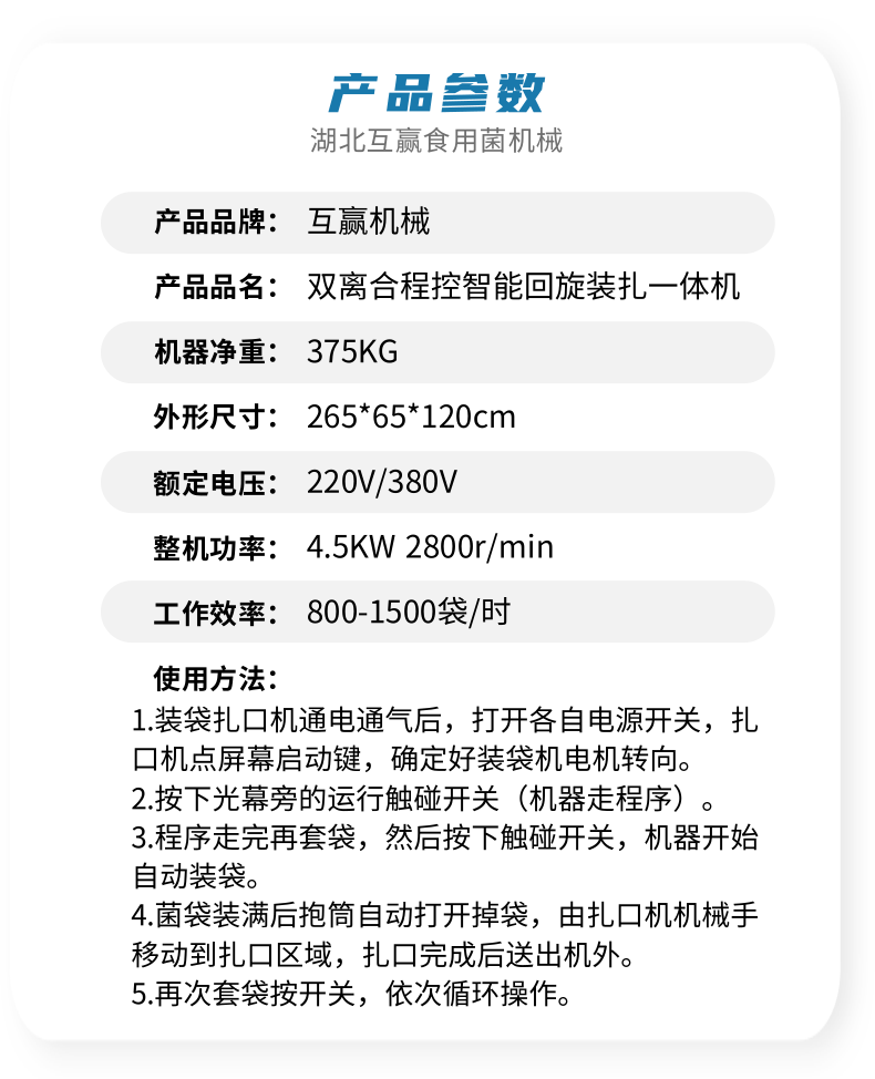 近年來代料香菇裝袋機的發(fā)展,越來越迅猛。其規(guī)模不斷擴大,品種不斷增多,地域限制越來越少。是農(nóng)民增收的可靠保障,也是地方政府的經(jīng)濟支柱。自動套袋食用菌裝袋機廣泛用在香菇、木耳、平菇、金針菇、茯苓、灰樹花、姬菇、秀珍菇等食用菌種植領(lǐng)域。是工廠、基地、合作社、家庭農(nóng)場理想的工廠化生產(chǎn)機械。生產(chǎn)規(guī)模的大小可根據(jù)資金、銷售量、經(jīng)營方式、技術(shù)力量、資源條件等綜合因素來確定,可用單機,也可組合設(shè)計成半機械化...