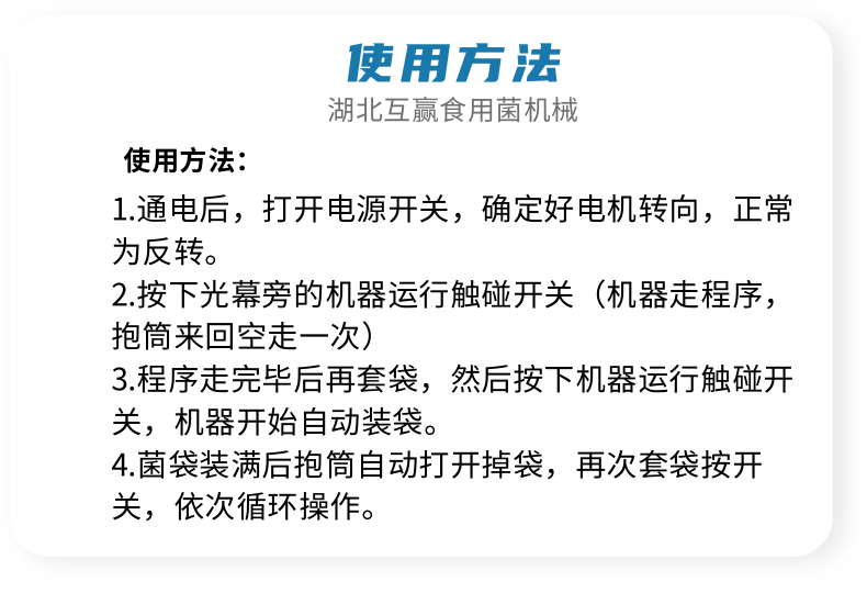 近年來代料香菇裝袋機(jī)的發(fā)展,越來越迅猛。其規(guī)模不斷擴(kuò)大,品種不斷增多,地域限制越來越少。是農(nóng)民增收的可靠保障,也是地方政府的經(jīng)濟(jì)支柱。自動(dòng)套袋食用菌裝袋機(jī)廣泛用在香菇、木耳、平菇、金針菇、茯苓、灰樹花、姬菇、秀珍菇等食用菌種植領(lǐng)域。是工廠、基地、合作社、家庭農(nóng)場理想的工廠化生產(chǎn)機(jī)械。生產(chǎn)規(guī)模的大小可根據(jù)資金、銷售量、經(jīng)營方式、技術(shù)力量、資源條件等綜合因素來確定,可用單機(jī),也可組合設(shè)計(jì)成半機(jī)械化...