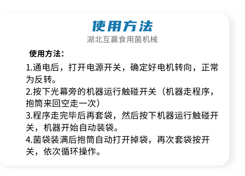 近年來代料香菇裝袋機(jī)的發(fā)展,越來越迅猛。其規(guī)模不斷擴(kuò)大,品種不斷增多,地域限制越來越少。是農(nóng)民增收的可靠保障,也是地方政府的經(jīng)濟(jì)支柱。自動(dòng)套袋食用菌裝袋機(jī)廣泛用在香菇、木耳、平菇、金針菇、茯苓、灰樹花、姬菇、秀珍菇等食用菌種植領(lǐng)域。是工廠、基地、合作社、家庭農(nóng)場(chǎng)理想的工廠化生產(chǎn)機(jī)械。生產(chǎn)規(guī)模的大小可根據(jù)資金、銷售量、經(jīng)營方式、技術(shù)力量、資源條件等綜合因素來確定,可用單機(jī),也可組合設(shè)計(jì)成半機(jī)械化...